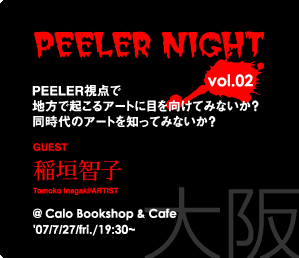 (*1)PEELER/代表・ディレクションの藤田千彩(美術ライター/1974年岡山県生まれ東京都在住)と、ディレクション・デザイン/野田利也(会社員生活の傍らN-markとして活動/1972年愛知県生まれ岐阜県在住)を中心に、全国各地の書き手の協力のもと、2005年2月から始まったwebマガジン。http://www.peeler.jp/