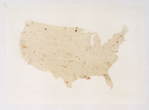 これはごみ、両面テープで地図を作って、ぼくの部屋の床にペタペタ押し付けると、僕の毛とかついて、それを離れて見るといかにも地図っぽく見えるんです。意外とこれが人気あるんだよね。