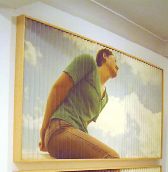 あらかじめ縦に細かく分割した二枚の写真を、互い違いに配置して印刷したのち、折り畳むのだろう。