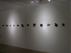 特に興味深かったのは、「PLANET LINE」と名付けられた一連の品々だ。壁に横一直線に並べられた「化石」は、フロッピーディスク、カセットテープ、ビデオテープなど、四角い物で構成される。そして、この「PLANET
